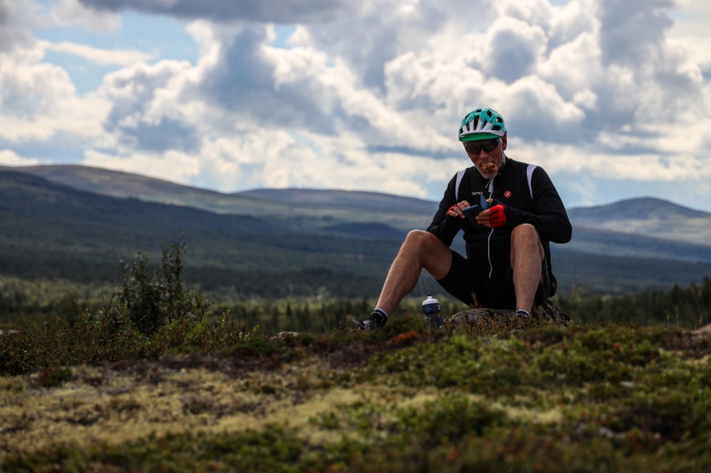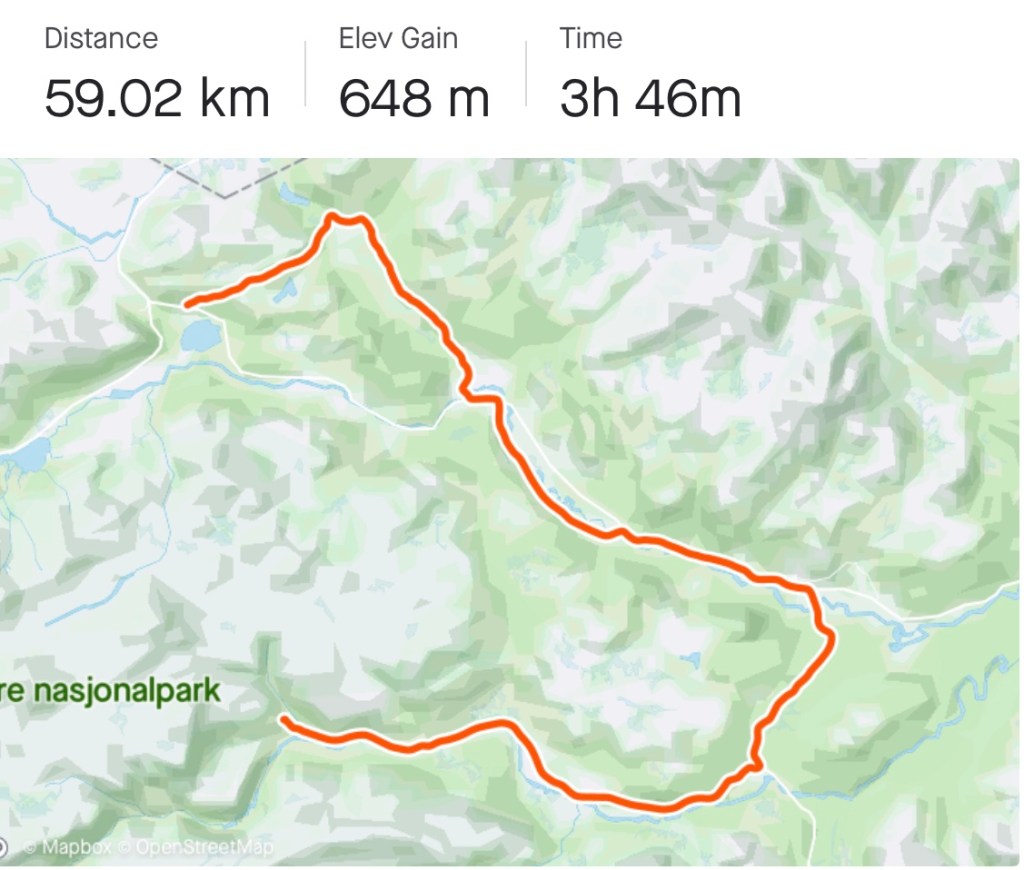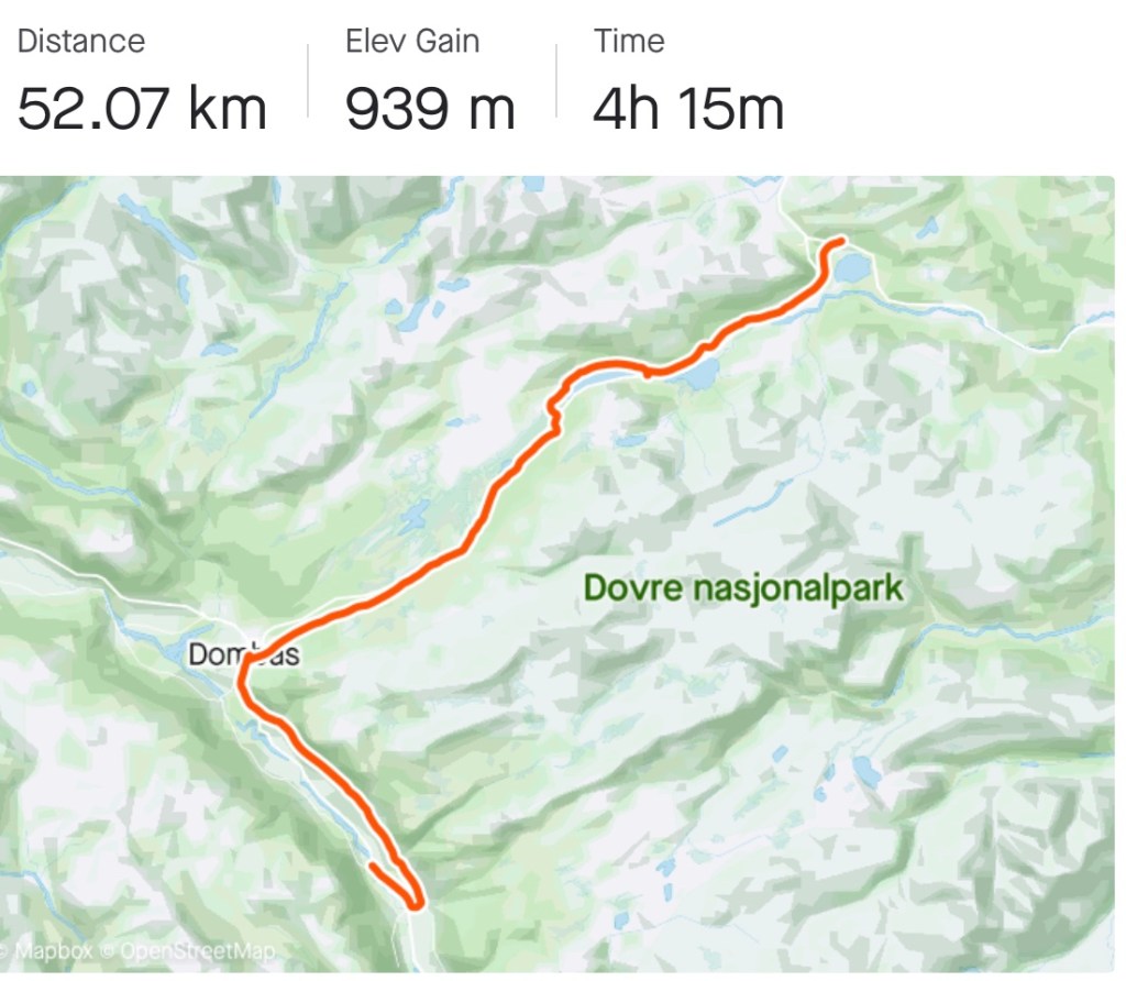 Denne delen av turen gir mest høydemeter, men når vi endelig er oppe på fjellet etter Dombås går det ganske radig på vei til Hjerkinn Fjellstue