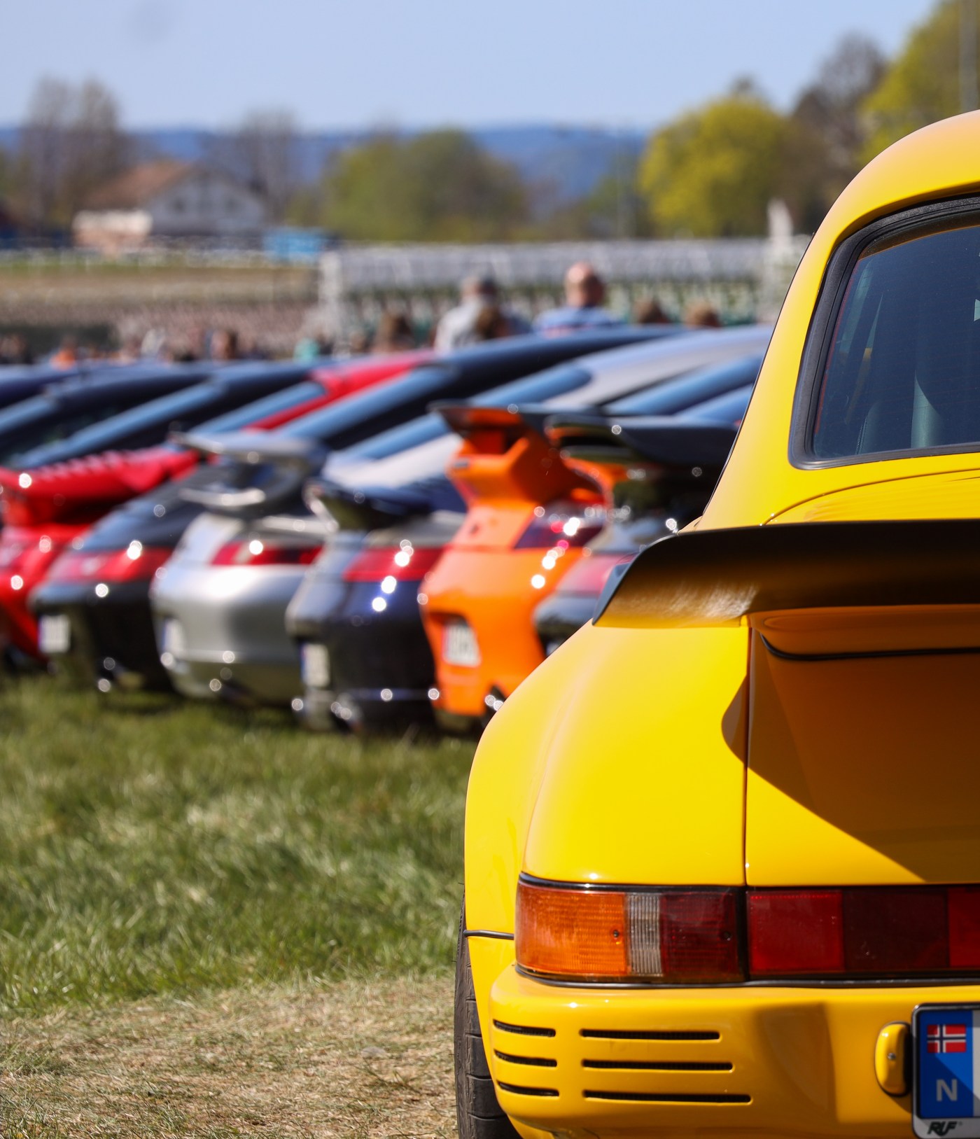 Lang lang rekke når 150 – 200 Porscher drar av gårde fra Hennie Onstadsenteret for å ta turen til vårmønstring på Øvrevoll