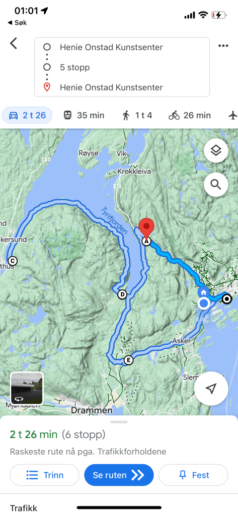 Vi er flere bilinteresserte på jobben og hadde lenge snakket om en kjøretur sammen. 19. september møtte vi 6 stykker etter jobb på Henie Onstad kunstsenter. Målet var Vikersund hoppsenter, en flott tur på svingete veier langs Tyrifjorden.