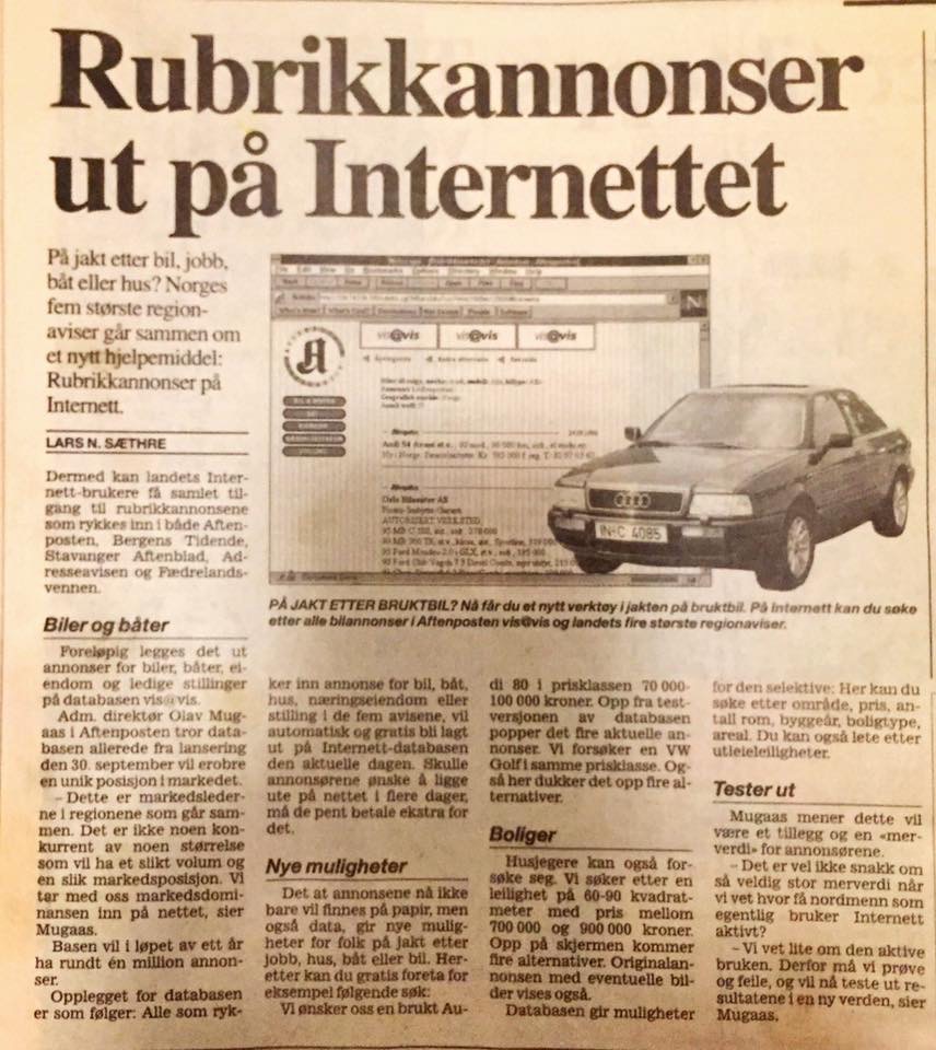 I together with Per Eirik Marton and Per Christian Engdahl, was “thrown” in to make the web solution that displayed all the ads on the web.