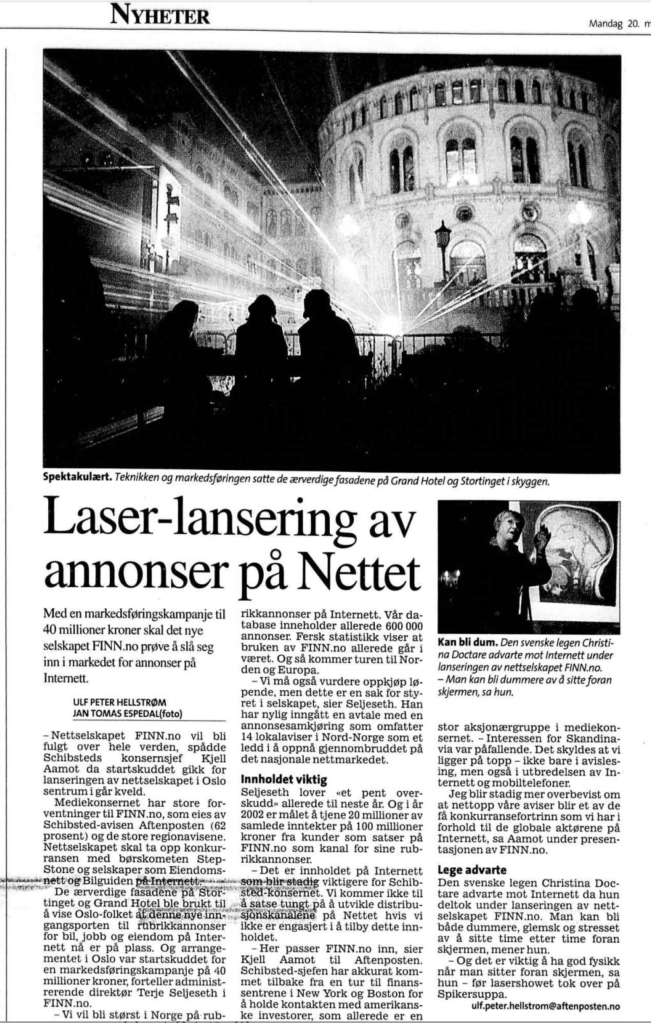 Finally in 2000 the newspapers with Aftenposten in charge established FINN.no as a company with Terje Seljeseth as the CEO and they were building FINN from scratch again.