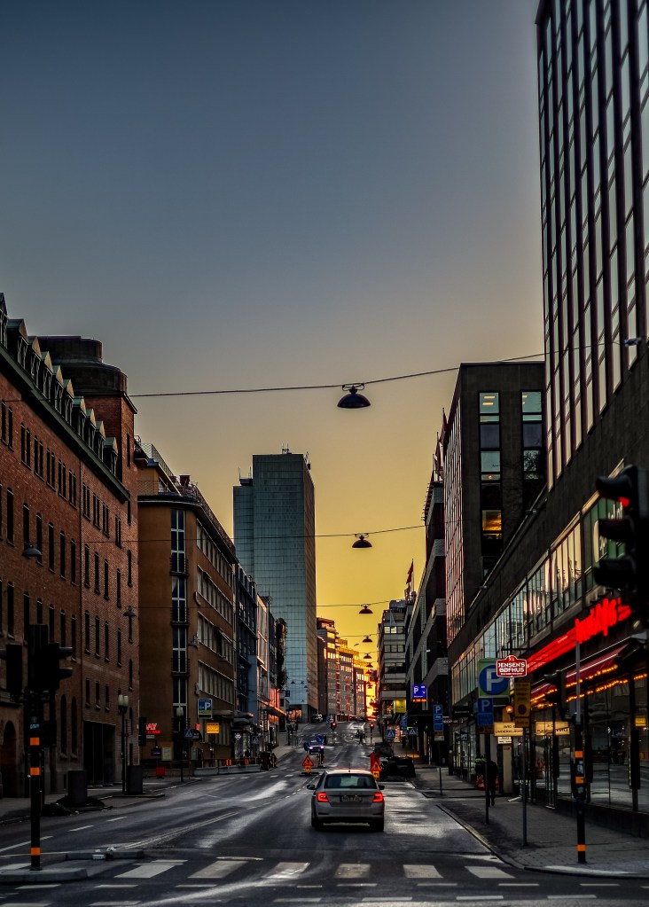 Med team i Sverige på jobb ble det også en Stockholmstur, hvor det var både fin solnedgang og jeg fikk i tillegg testet bilder med lang lukkertid, under er ett som er tatt av Schibsteds okaler i Stockholm.