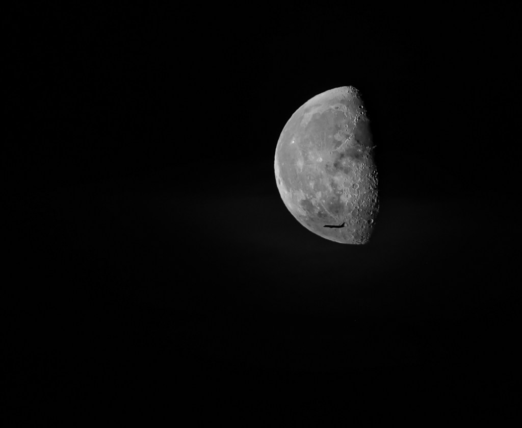 Jeg har lenge hatt lyst til å ta bilde av et fly som passerer månen. Dette er ikke et fantastisk bra bilde men jeg klarte det – silluetten av et fly sees mot månen i det det passerer. Litt planlegging og litt flaks. Sto på verandaen hjemme og fulgte med fly innover mot Oslo. Plutselig var det ett som hadde riktig høye men jeg mistet det av syne rett før så jeg fyrte av flere “skudd” og der satt den 🙂