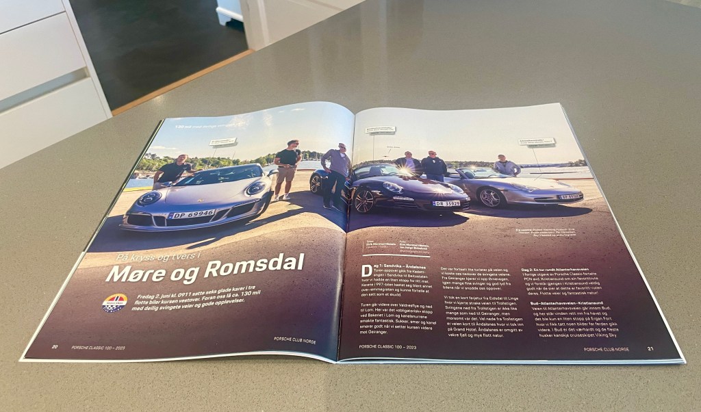 Måned med bil i fokus, en legandarisk tur til Romsdalen med gode Porschevenner, som også ble et lite oppslag i Porsche Magasinet.