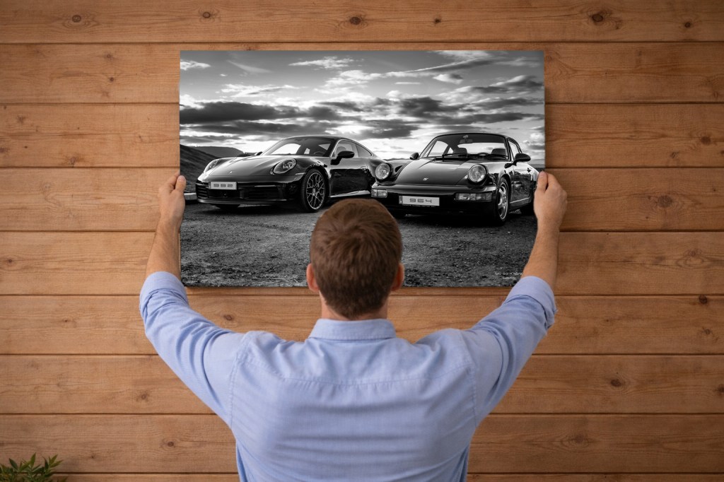 Ett ikon i 2 versjoner. En 911 964 fra tidlig å på 90-tallet og 911 992 illustrerer en en gradvis evolusjon uten å miste sin ikoniske silluette.