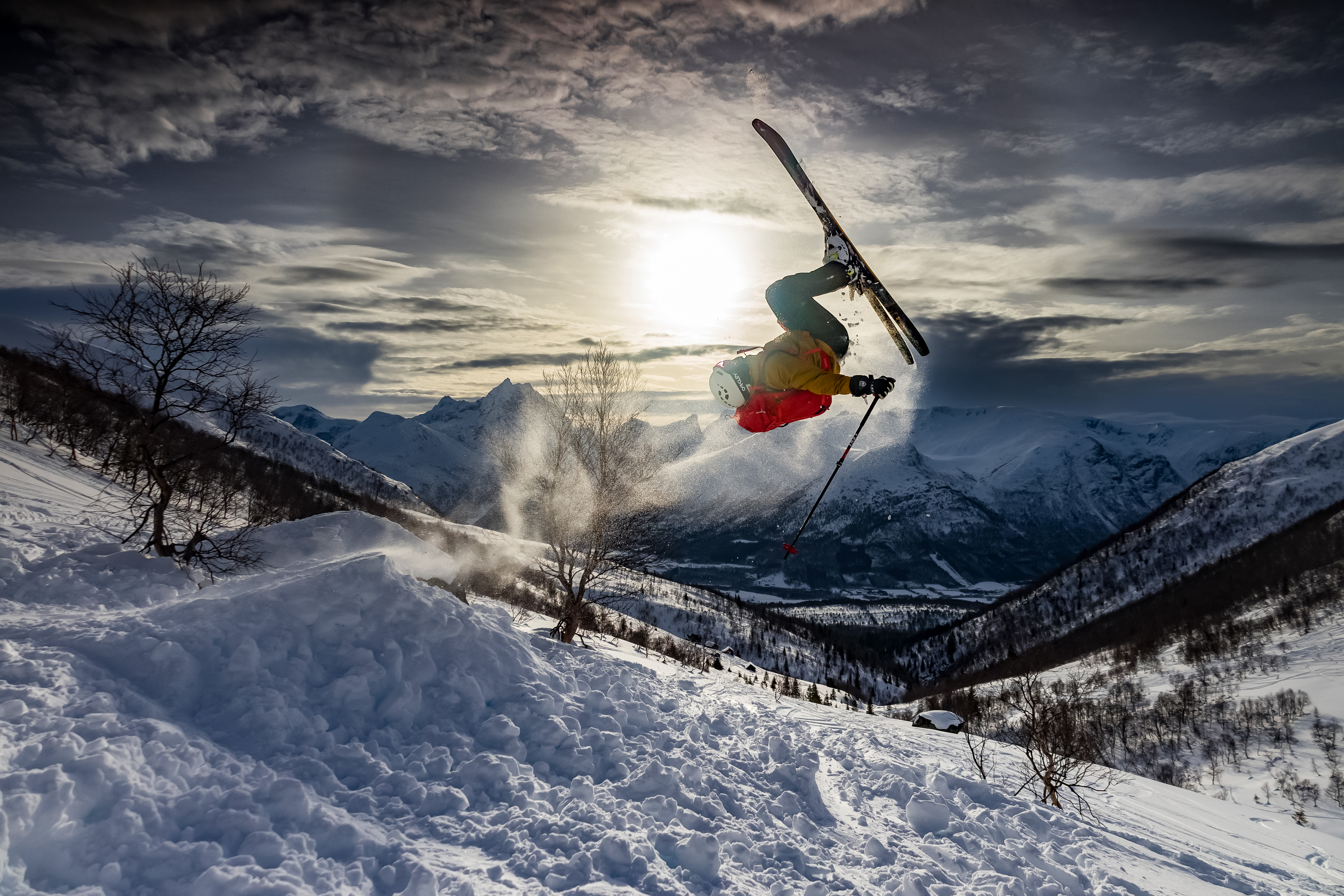 Et fartsfylt bilde, hvor man virkelig blir dratt inn i backflippen. Bilde er tatt i fjellet ved Isfjorden i Romsdalen